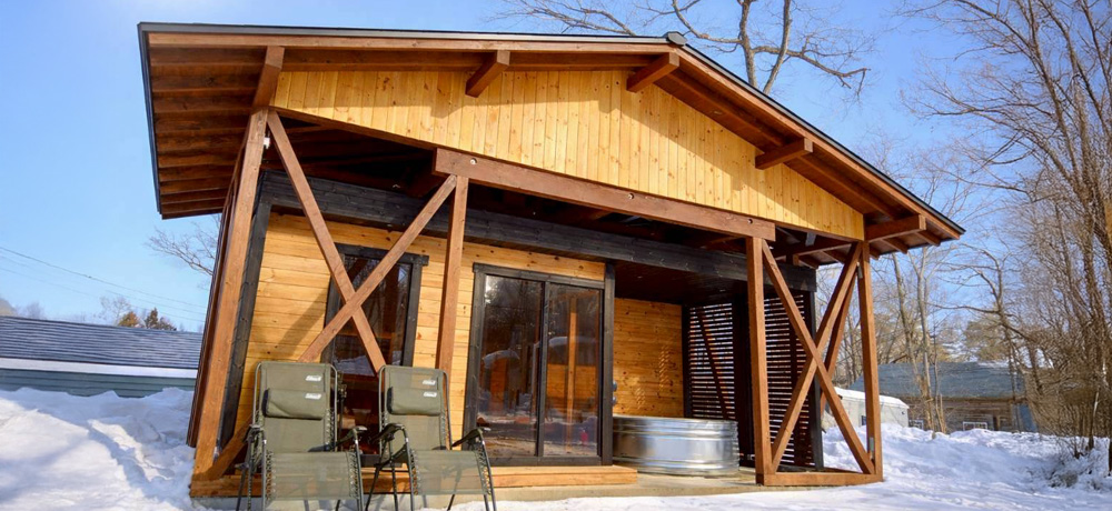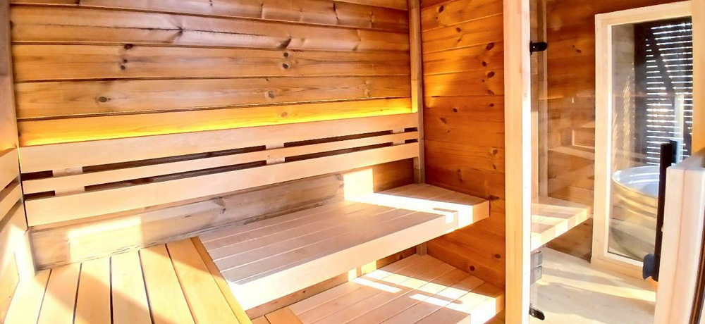 パティオL Plusは、パティオLの快適なサウナルームに加え、便利な更衣室を備えた豪華な屋外サウナです。